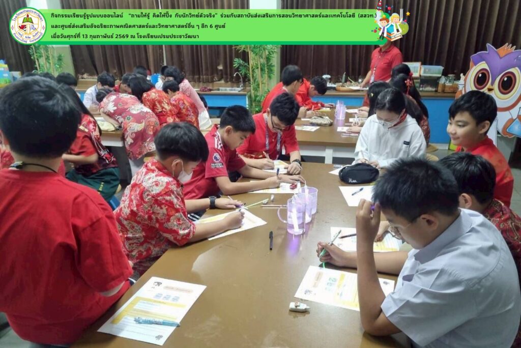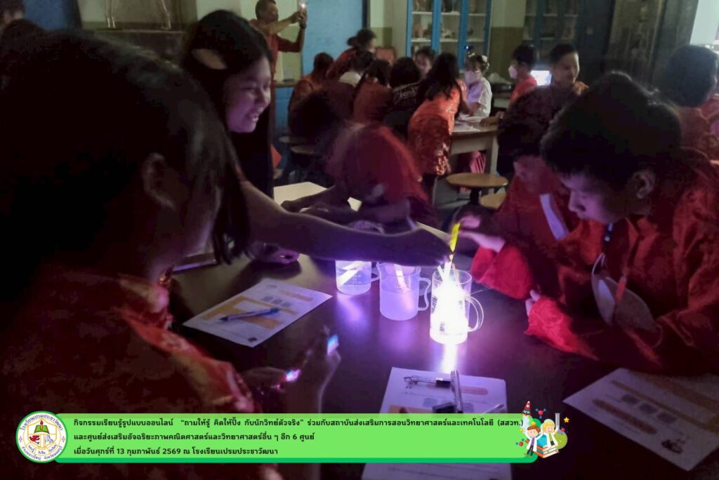กิจกรรมเรื่อง “แท่งเรืองแสง : ทดสอบความไวของแสงในอุณหภูมิน้ำที่แตกต่างกัน นักเรียนได้ลงมือปฏิบัติการทดลองจริง นักเรียนได้ฝึกกระบวนการทางวิทยาศาสตร์อย่างครบถ้วน ทั้งการตั้งคำถาม ตั้งสมมติฐาน ทดลอง เก็บข้อมูล อภิปรายผล และแลกเปลี่ยนความคิดเห็นกับเพื่อน ๆ ต่างโรงเรียน บรรยากาศเต็มไปด้วยความอยากรู้อยากเห็น และพลังแห่งการค้นคว้า กิจกรรมครั้งนี้ไม่เพียงสร้างความสนุก แต่ยังปลูกฝัง “ความคิดแบบนักวิทยาศาสตร์” ให้กับนักเรียน กล้าคิด กล้าถาม กล้าทดลอง และไม่กลัวความผิดพลาด พร้อมจุดประกายแรงบันดาลใจสู่การเป็นนักคิดค้นและนักวิทยาศาสตร์ในอนาคต