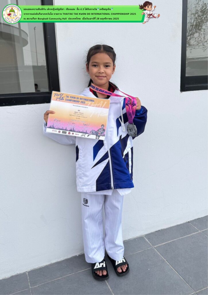 จากการเข้าร่วมการแข่งขันกีฬาเทควันโด ในรายการ THAITAE TAE KWON DO INTERNATIONAL CHAMPIONSHIP 2025 ประเภทต่อสู้ รุ่น 9-10 ปี ณ สนามกีฬา Bangkadi Community Hall ประเทศไทย เมื่อวันเสาร์ที่ 28 พฤศจิกายน 2025 - . ขอแสดงความชื่นชมยินดีกับนักเรียน และผู้ปกครอง ที่ได้รับรางวัลในการแข่งขันครั้งนี้
