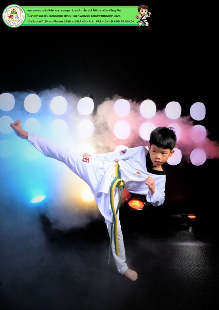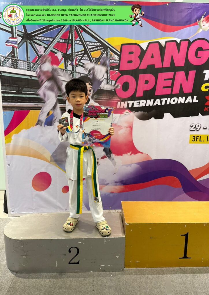 • 🥈เด็กชายธนกฤต ช่วยแก้ว ชั้นประถมศึกษาปีที่ 2 ได้รับรางวัลเหรียญเงิน ประเภท Kyorugi C รุ่น 7-8 ปี ชาย