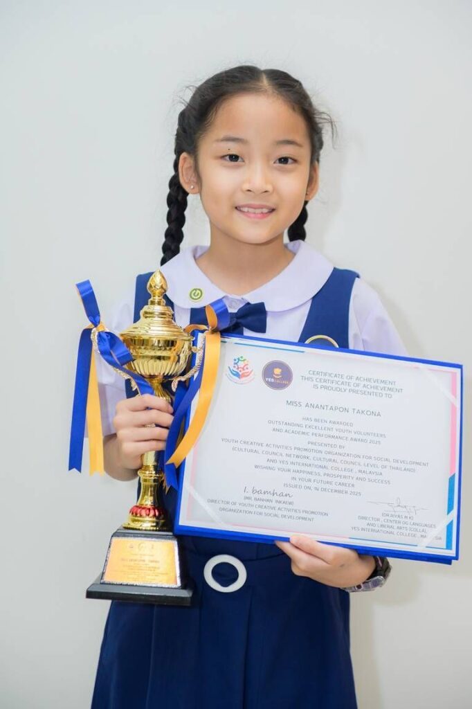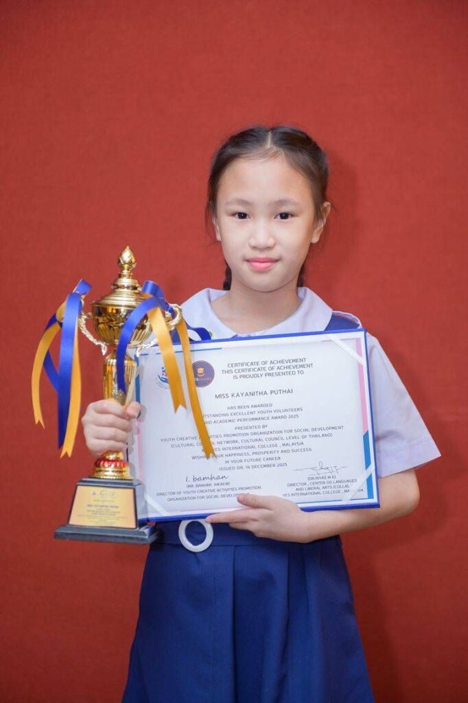 3. เด็กหญิงกต์ญาณิฐาสิ์ร์ พุทธให้ ชั้นประถมศึกษาปีที่ 3- โดยมี นางมงคลทิพย์ รุ่งงามฤกษ์ ผู้ทรงคุณวุฒิ กรมส่งเสริมวัฒนธรรม เป็นประธานในพิธีและมอบรางวัลให้กับนักเรียน เมื่อวันอาทิตย์ที่ 14 ธันวาคม 2568 ณ สมาคมธรรมศาสตร์ ในพระบรมราชูปถัมภ์