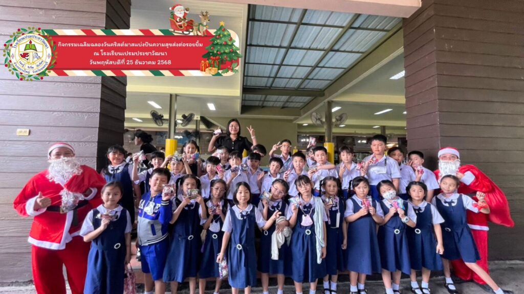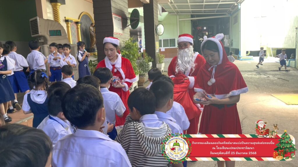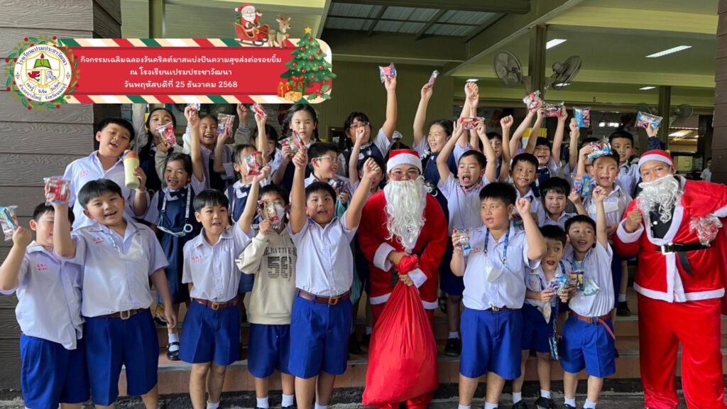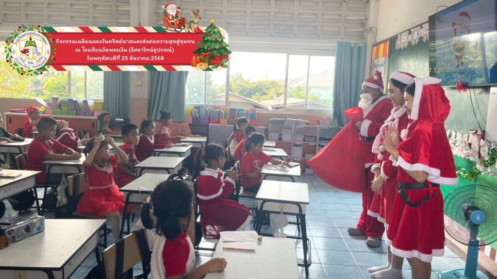- ในโอกาสอันศักดิ์สิทธิ์นี้ โรงเรียนขอส่งความปรารถนาดีในวันคริสต์มาส ขอให้พระกุมารเยซูประทานพระพรแห่งความรัก ให้ทุกท่านเปี่ยมด้วยความสุข ความอบอุ่นใจ ภายใต้พระพรของพระกุมารเยซู