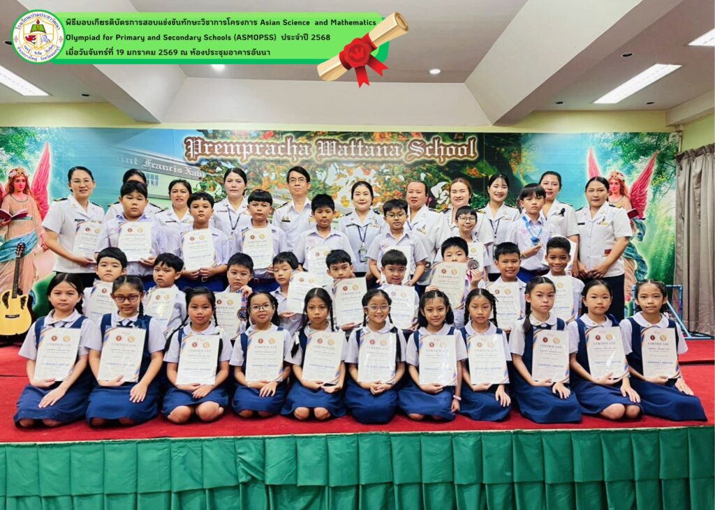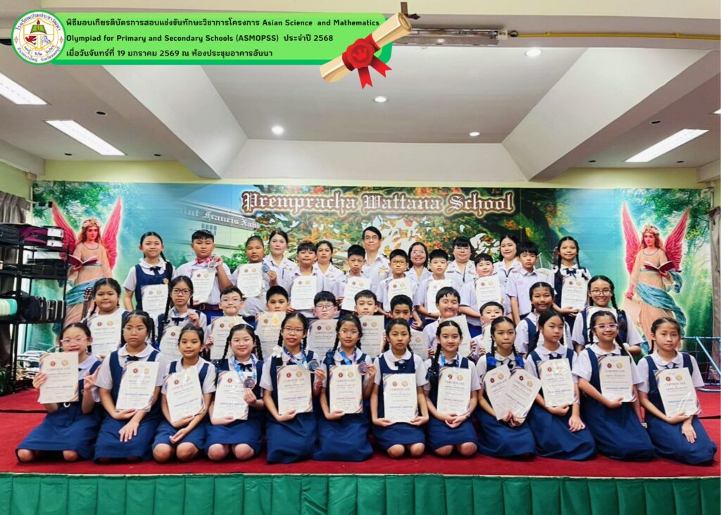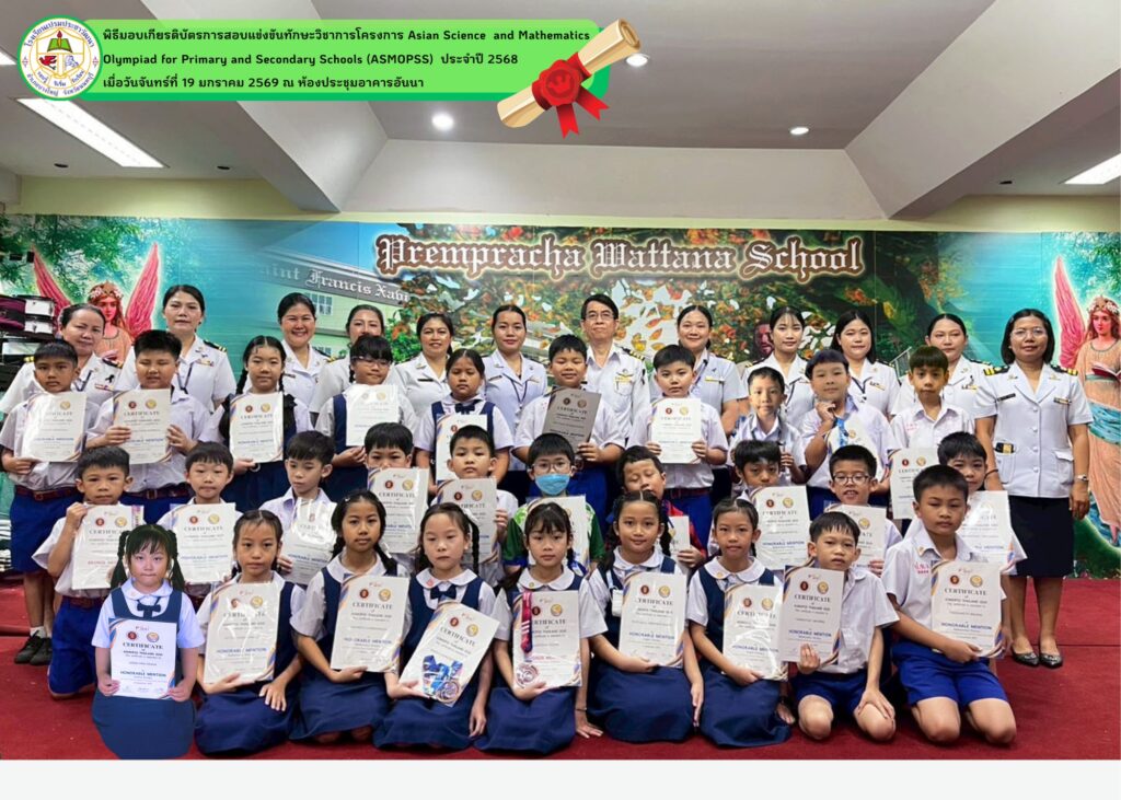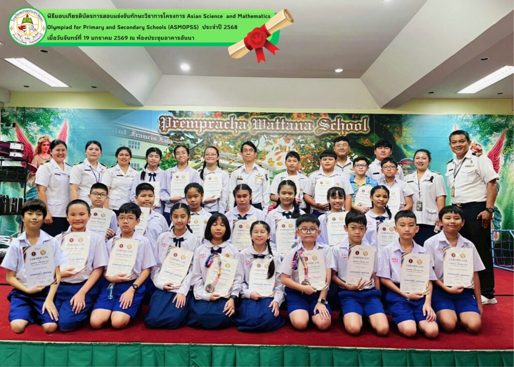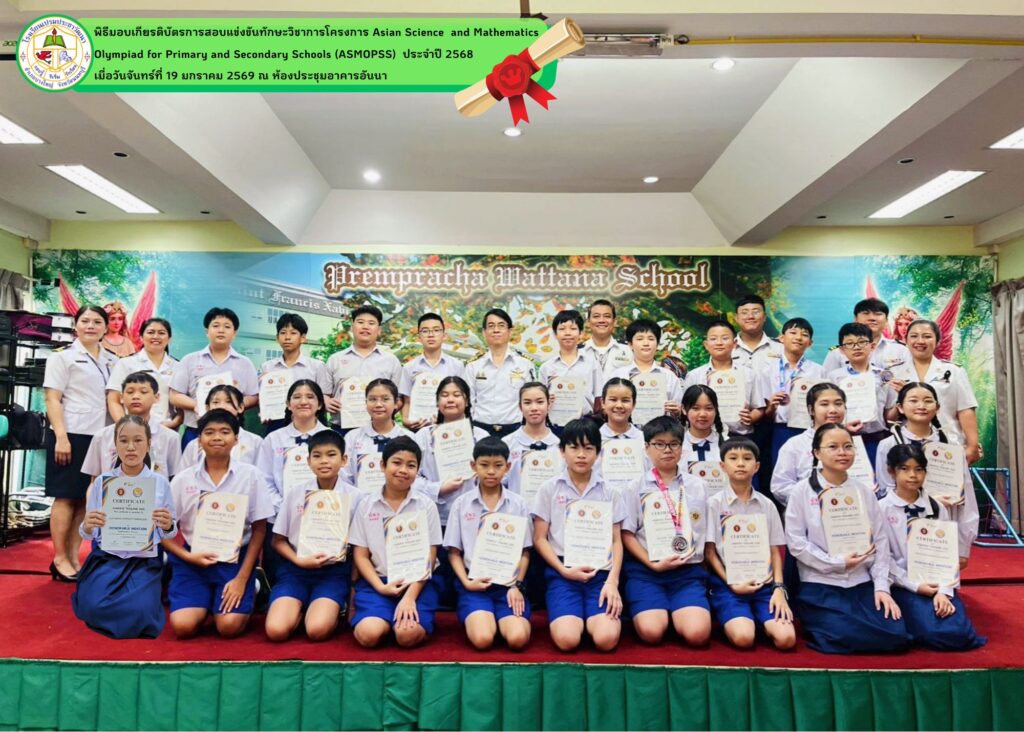 - โรงเรียนเปรมประชาวัฒนาขอแสดงความยินดีกับนักเรียนที่ได้รับรางวัลจากการสอบแข่งขันวิชาการโครงการ Asian Science and Mathematics Olympiad for Primary and Secondary Schools (ASMOPSS) ประจำปี 2568 นักเรียนได้รับรางวัลทั้งหมด ดังนี้